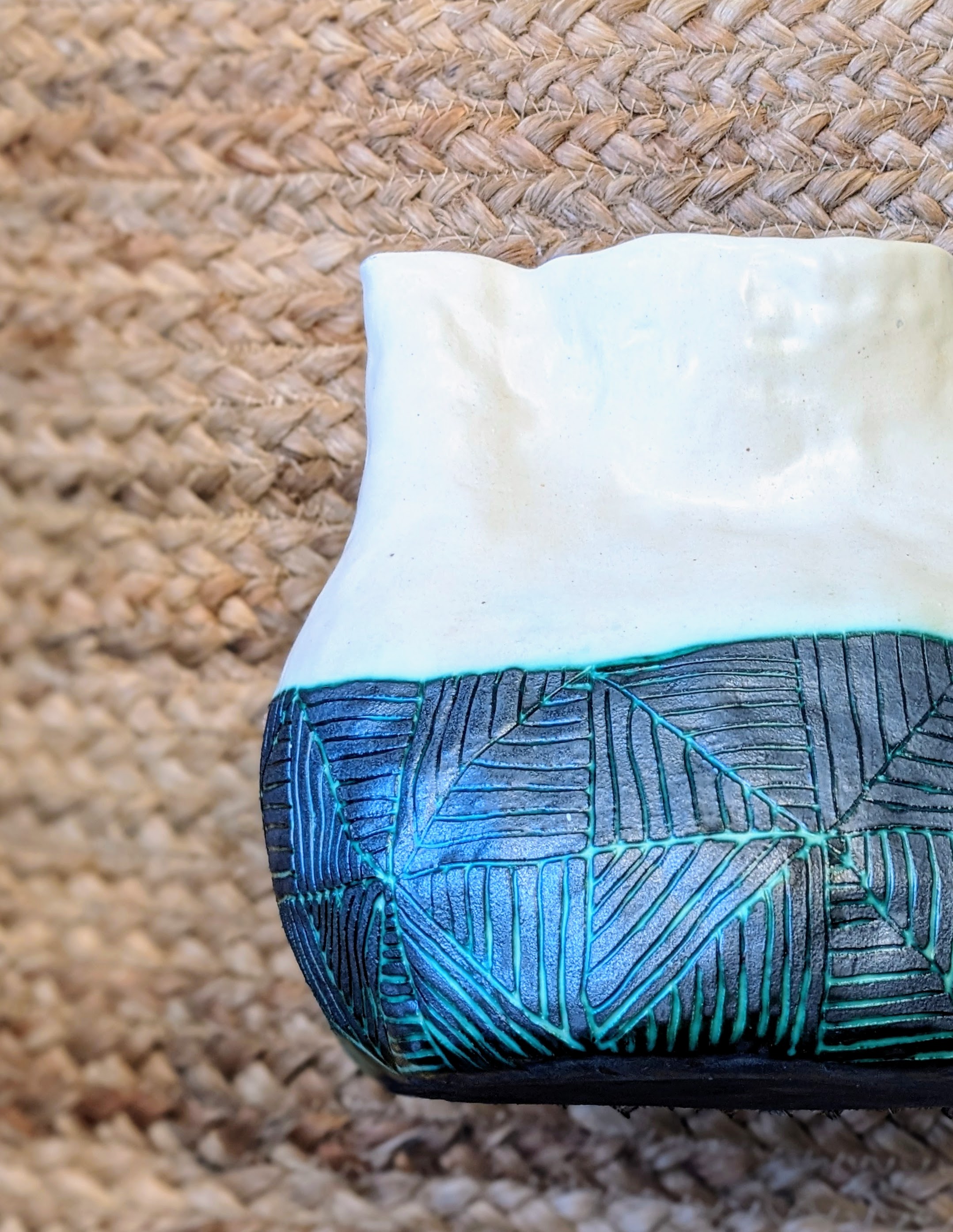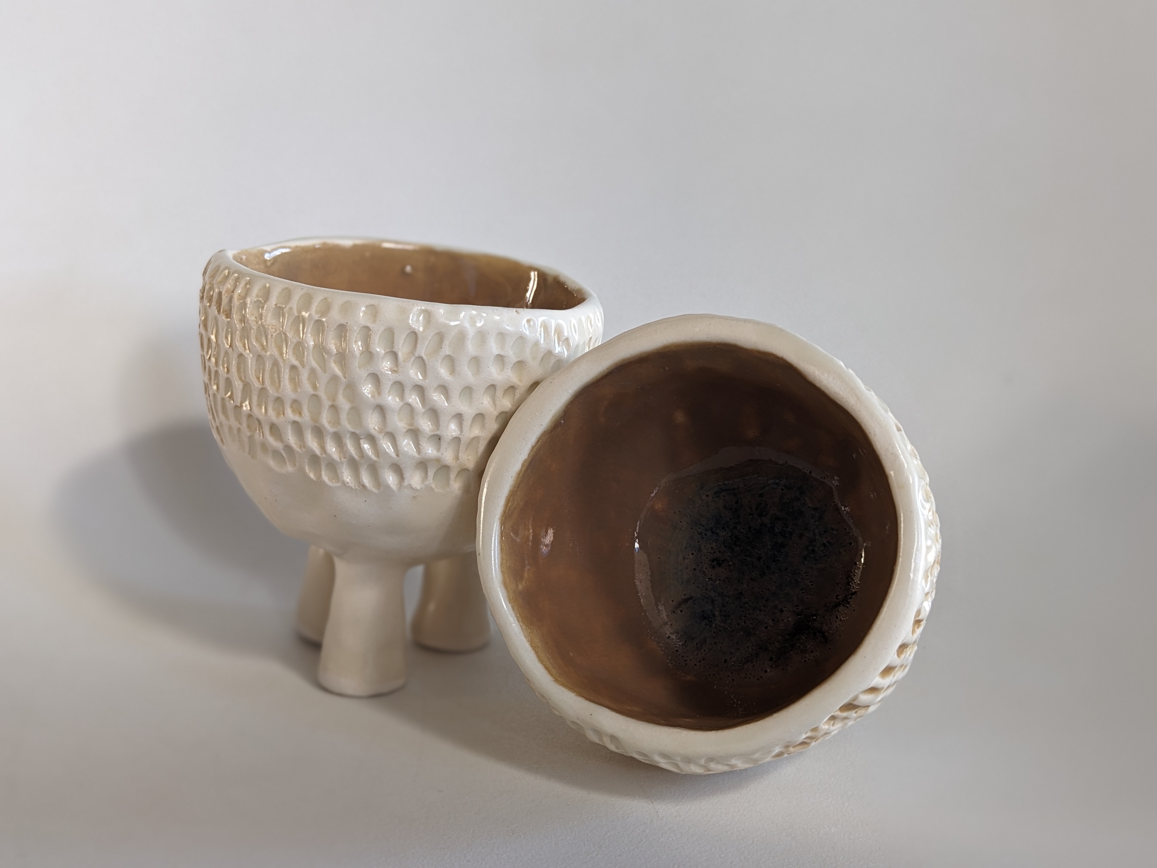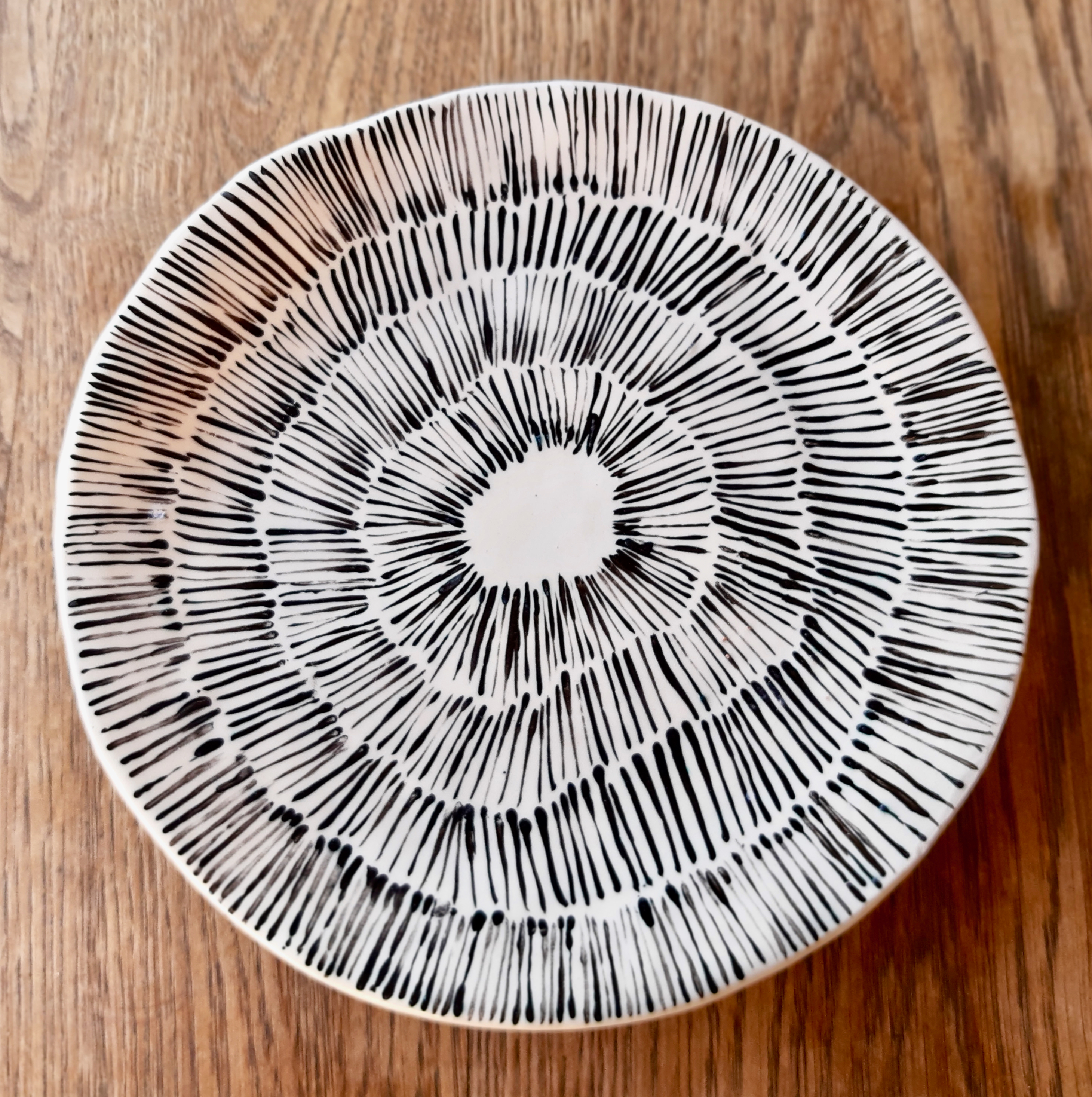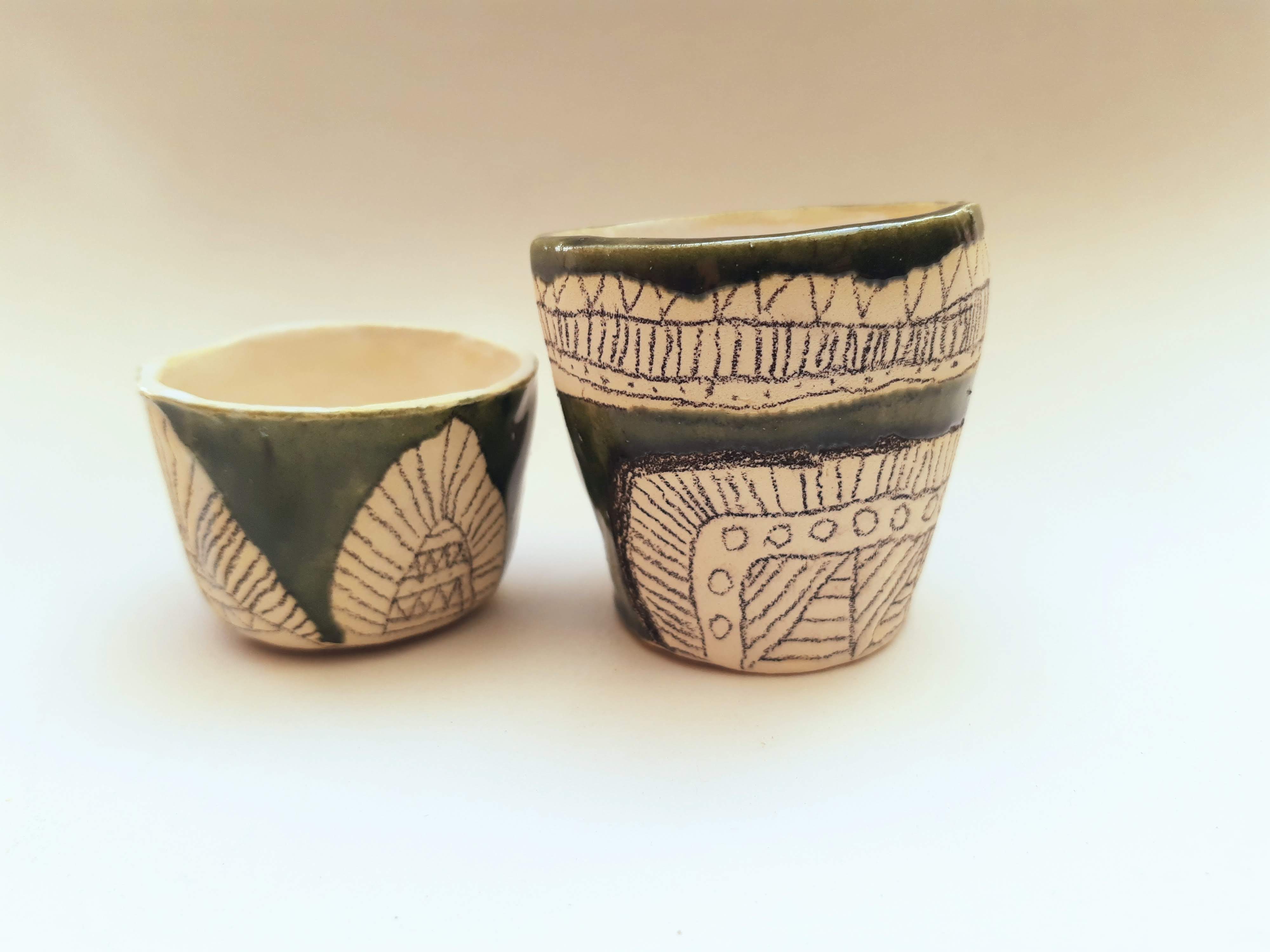 Es cerámica hecha a mano, con diseños irrepetibles. Intenta a través de la huella de las manos artesanas, romper la cotidianidad que nos devora con objetos de producciones masivas, para volver cada momento íntimo y delicado.